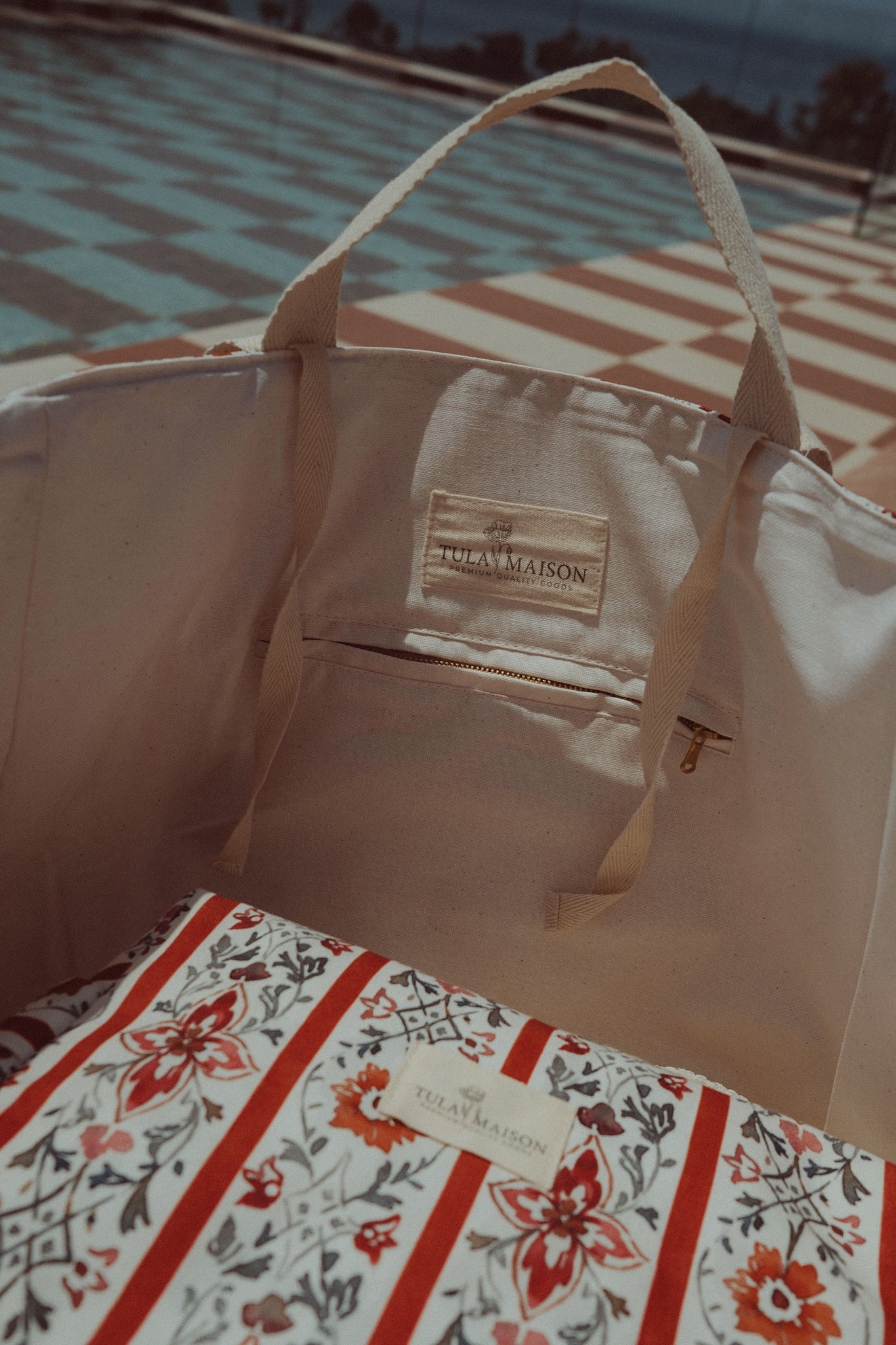 La bolsa mediana de playa de Tula Maison es perfecta para llevar todo lo que necesitas: varias toallas, un aperitivo, una botella de agua (o de lo que surja!) y el neceser Bruno a juego. Diseñada para aquellos que aprecian los momentos de tranquilidad junto al mar o en cualquier espacio exterior, esta bolsa es el complemento perfecto para tus días de verano. En cuanto a diseño, es igual que la bolsa grande de playa Santa Pola pero con unas medidas reducidas, la calidad y los acabados son los mismos.