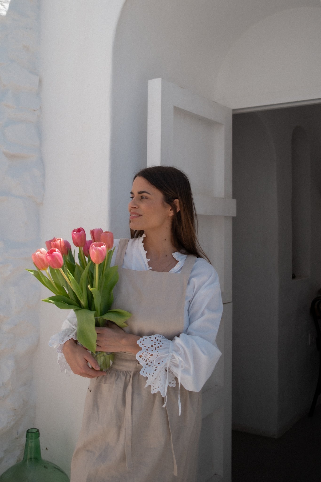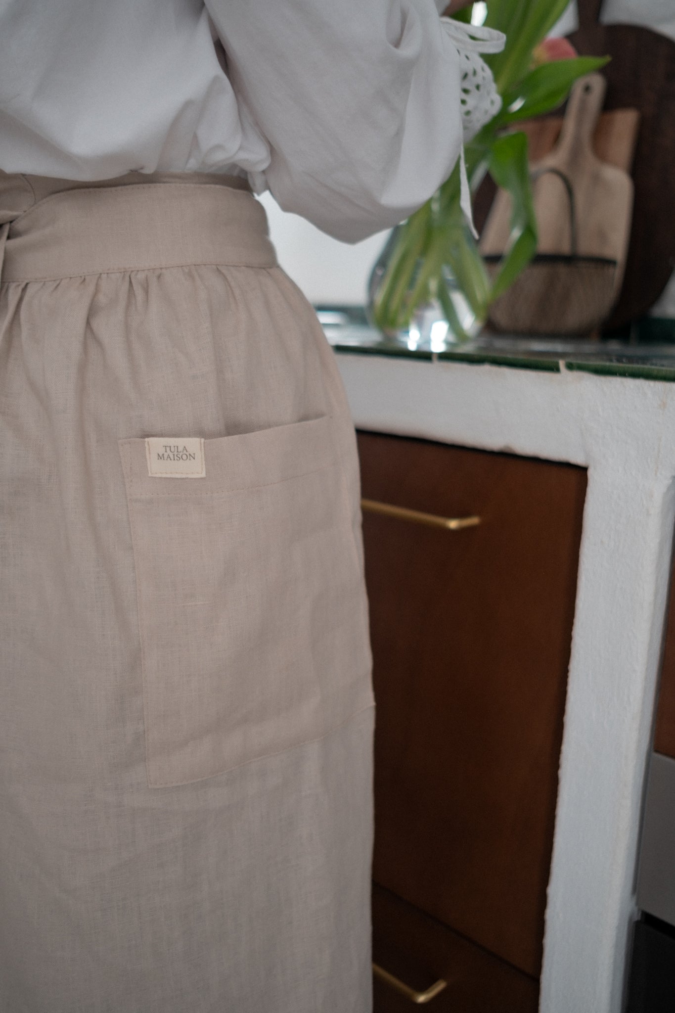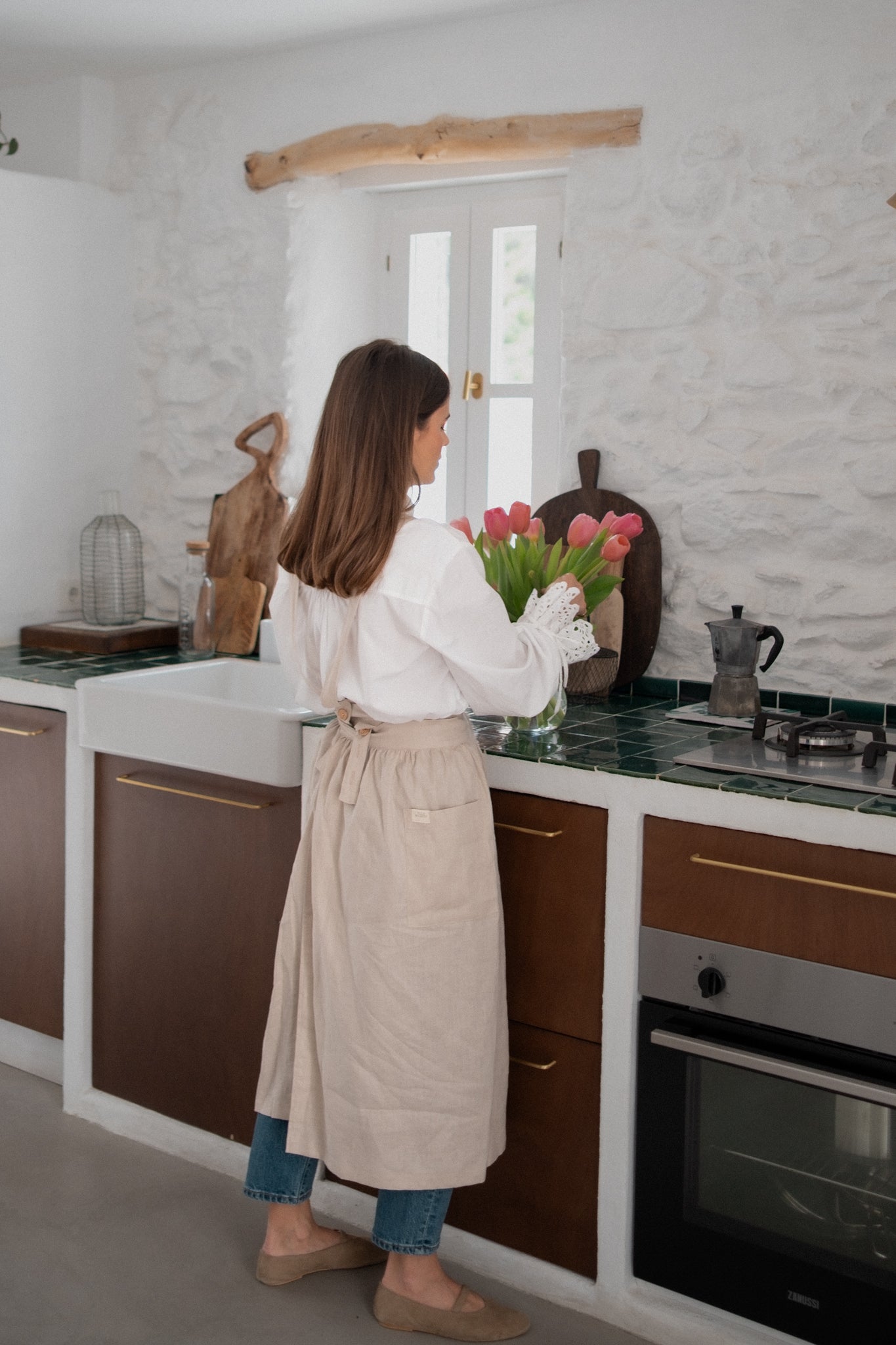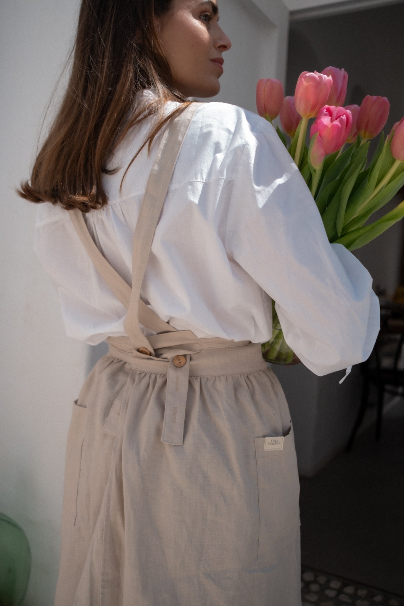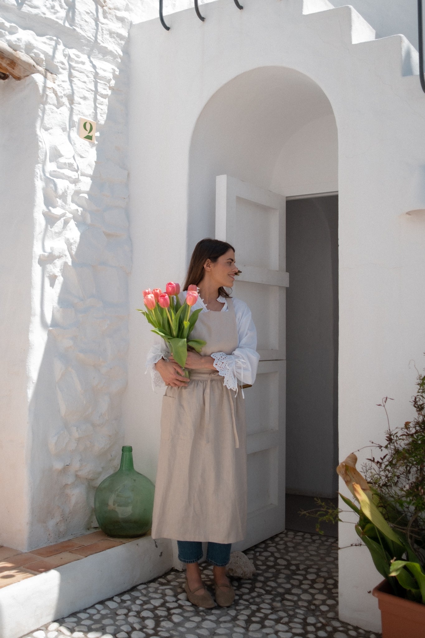 El delantal Emmy está diseñado para acompañarte en la cocina, en casa o en el jardín con comodidad, es indispensable para las amantes de la cocina. Está confeccionado en 100% lino europeo, es ligero muy resistente. Su caída natural y su textura suave le dan un aire rústico y atemporal que encaja con cualquier estilo de vida.
