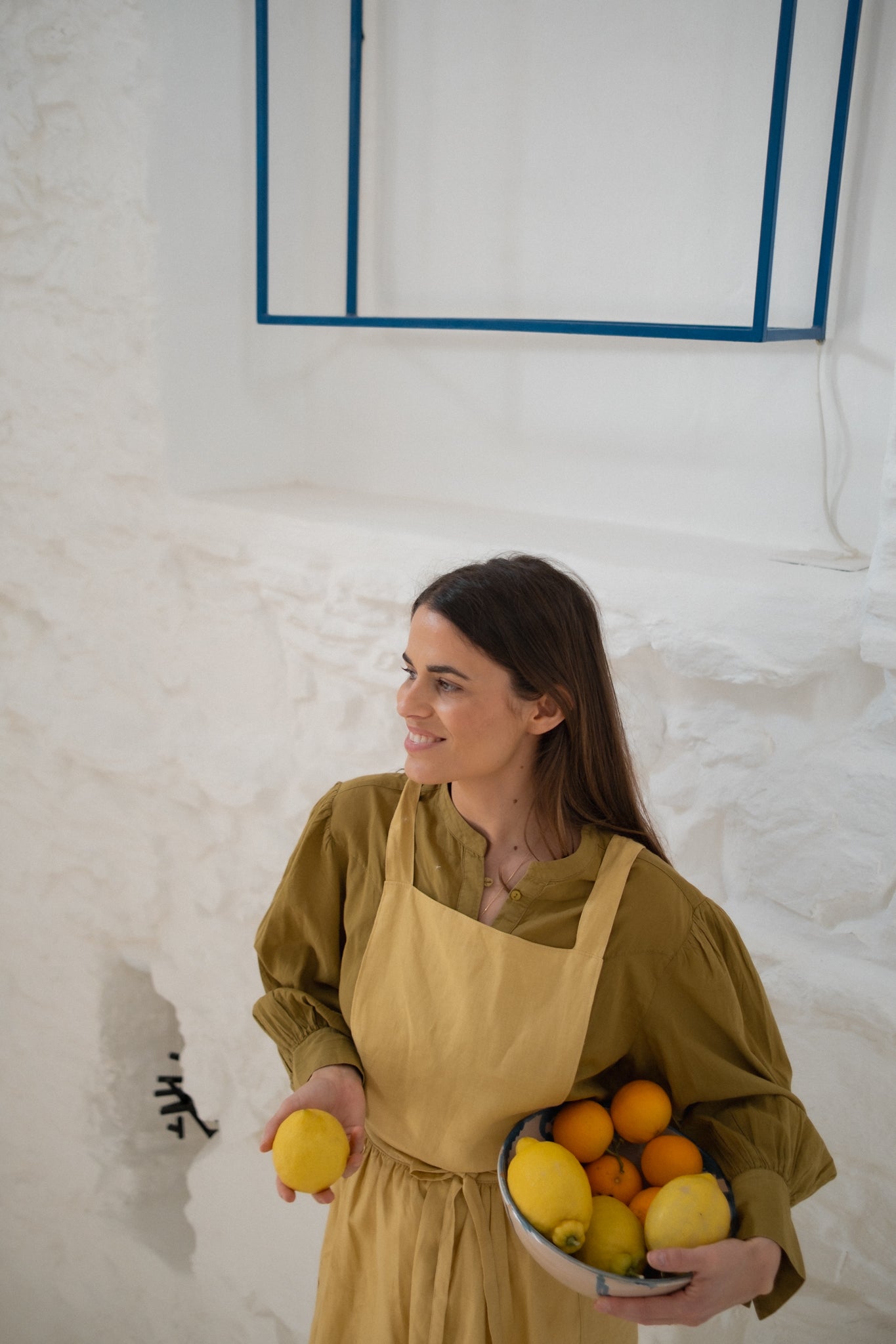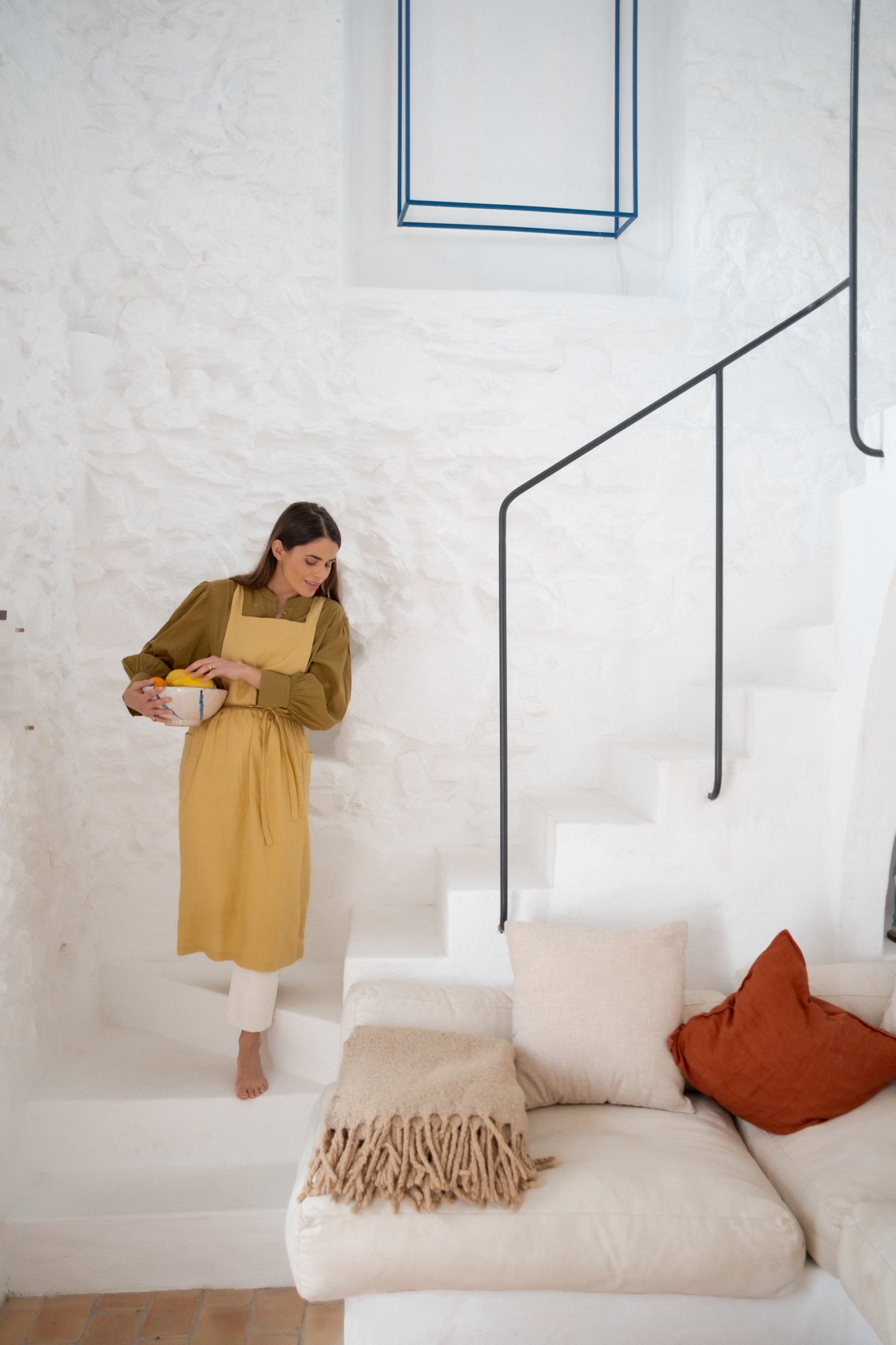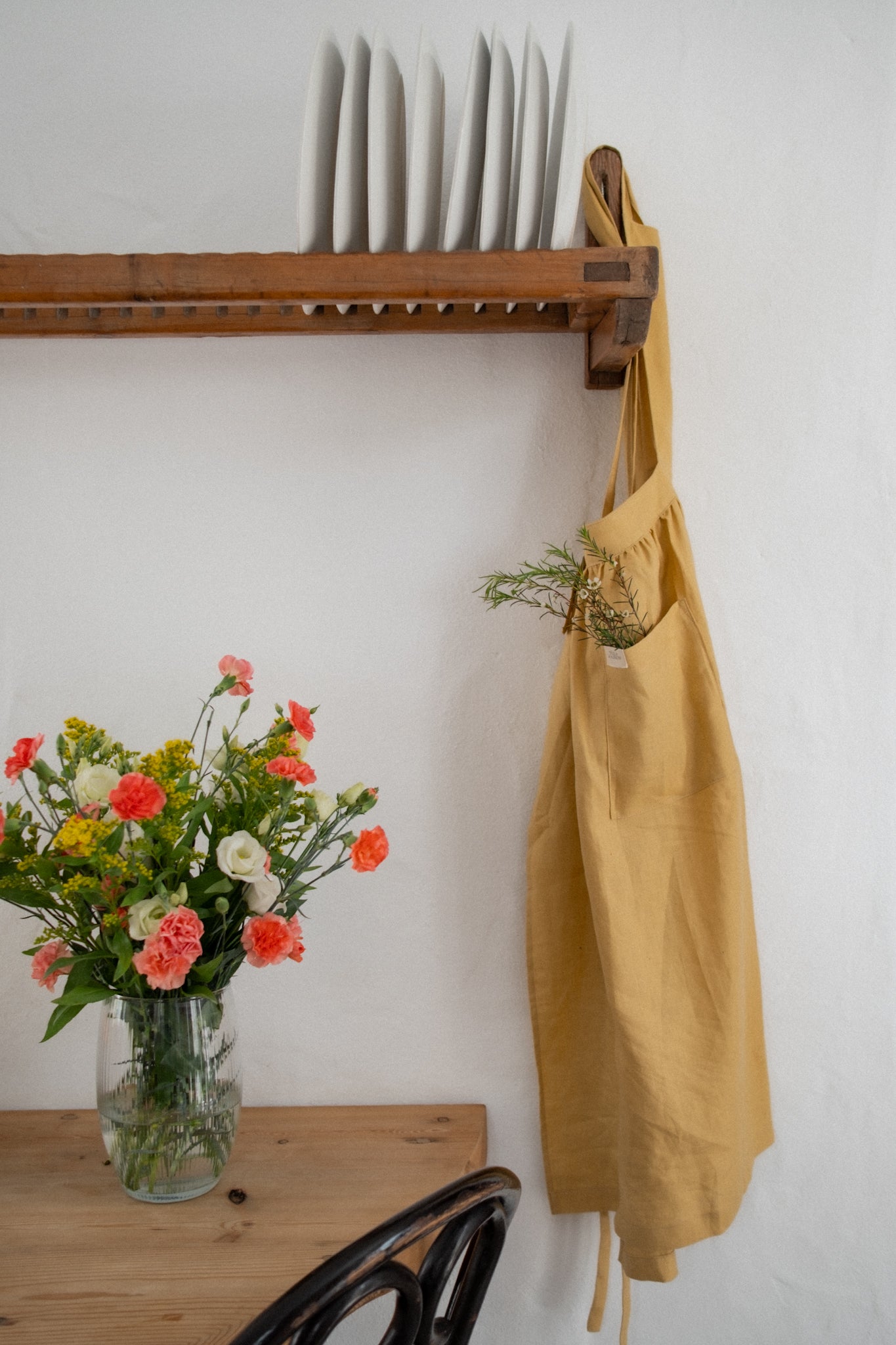 El delantal Emmy está diseñado para acompañarnos en la cocina, en casa o en el jardín con comodidad y estilo. Hecho en España y confeccionado en 100% lino europeo, un tejido muy resistente al uso y al paso del tiempo. Su caída natural y su textura suave le dan un aire rústico y atemporal, como esas prendas del hogar de antaño.