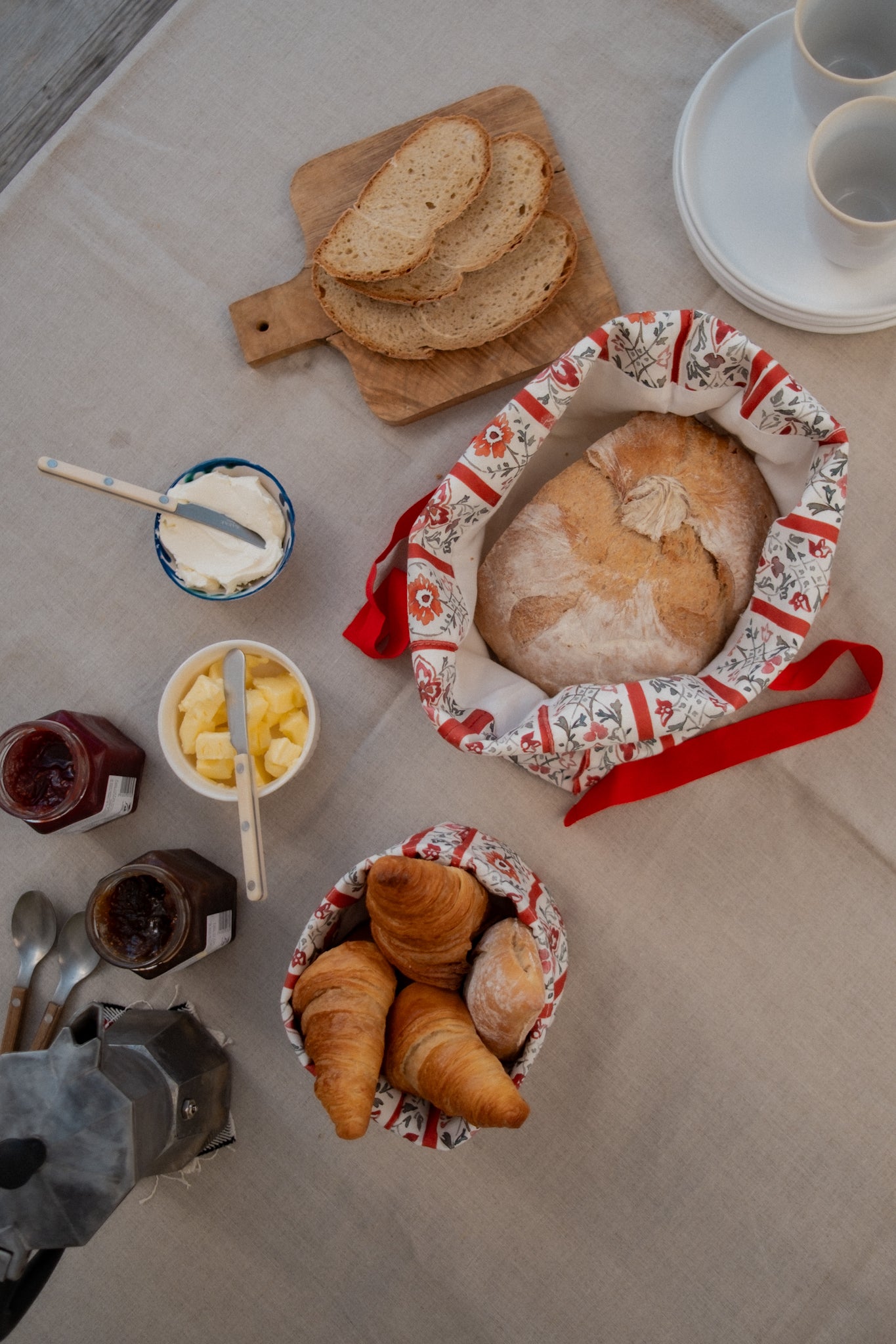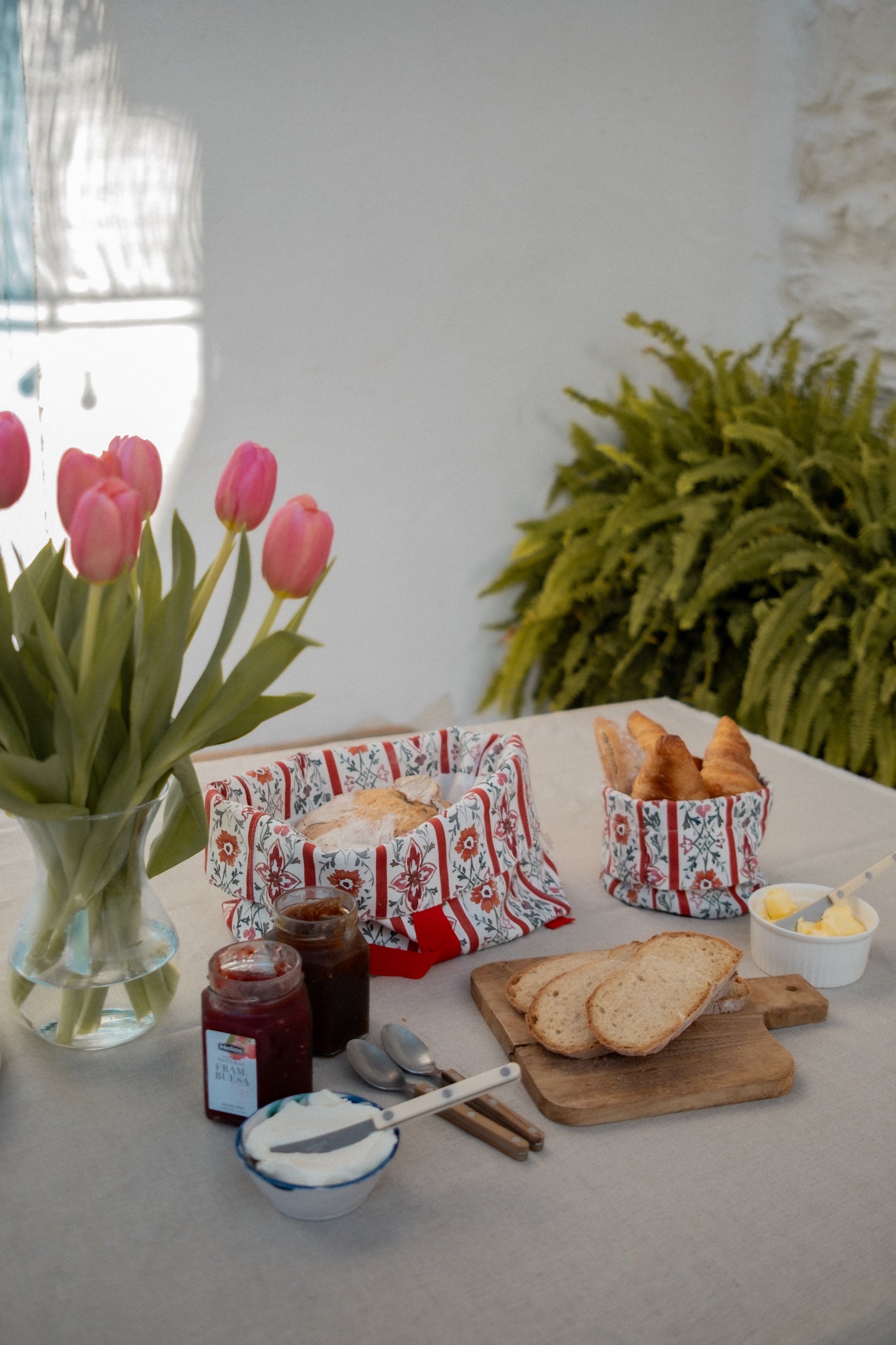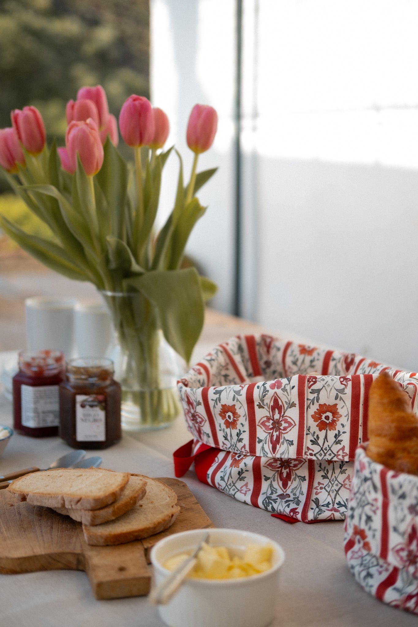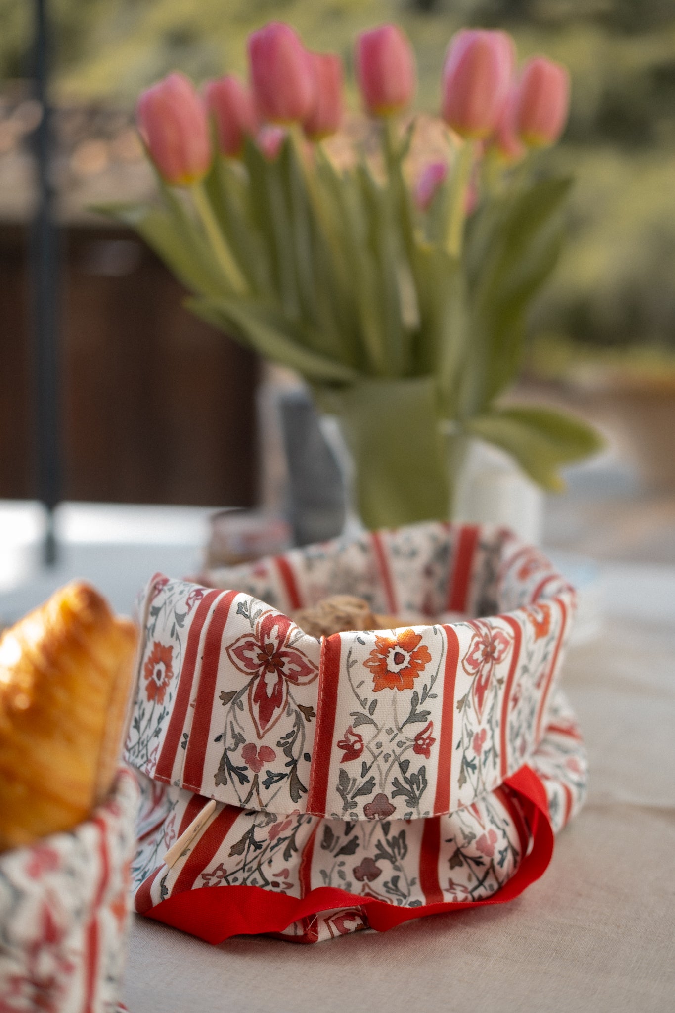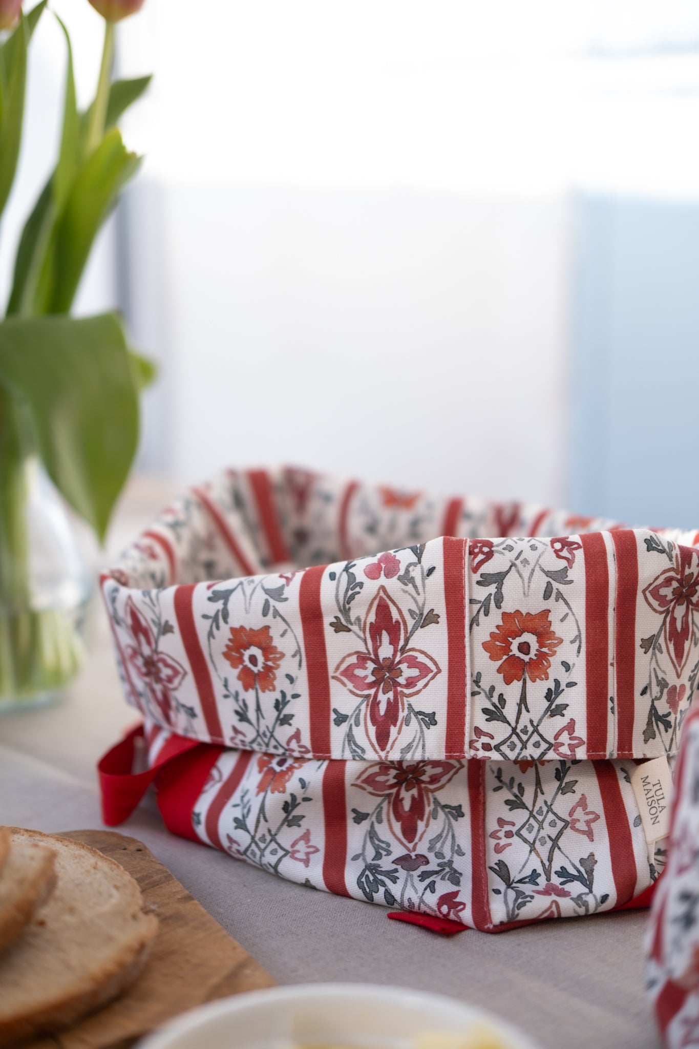 El detalle del lazo de algodón para cerrarla añade un toque encantador y funcional, sirve para cerrar la panera con un lazo, ideal para conservar el pan en la cocina o servir bollería y tostas con atención al cuidado. Además combina a a perfección con la cesta multiusos Bilma, confeccionada en el mismo tejido y de menor tamaño.