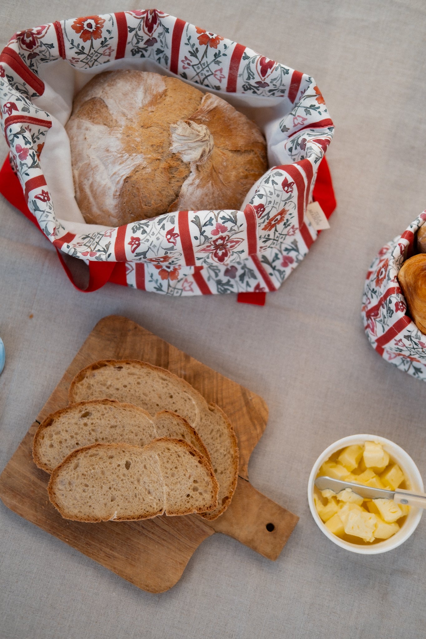 Hemos confeccionado la panera perfecta para guardar y presentar el pan en la mesa con estilo y calidez. Realizada en lona de algodón orgánico, su diseño estructurado permite que mantenga la forma con facilidad, mientras que el interior está forrado con el mismo tejido exterior, ofreciendo un acabado uniforme incluso cuando se dobla. Es de gran capacidad, entra perfectamente cualquier pan de hogaza.