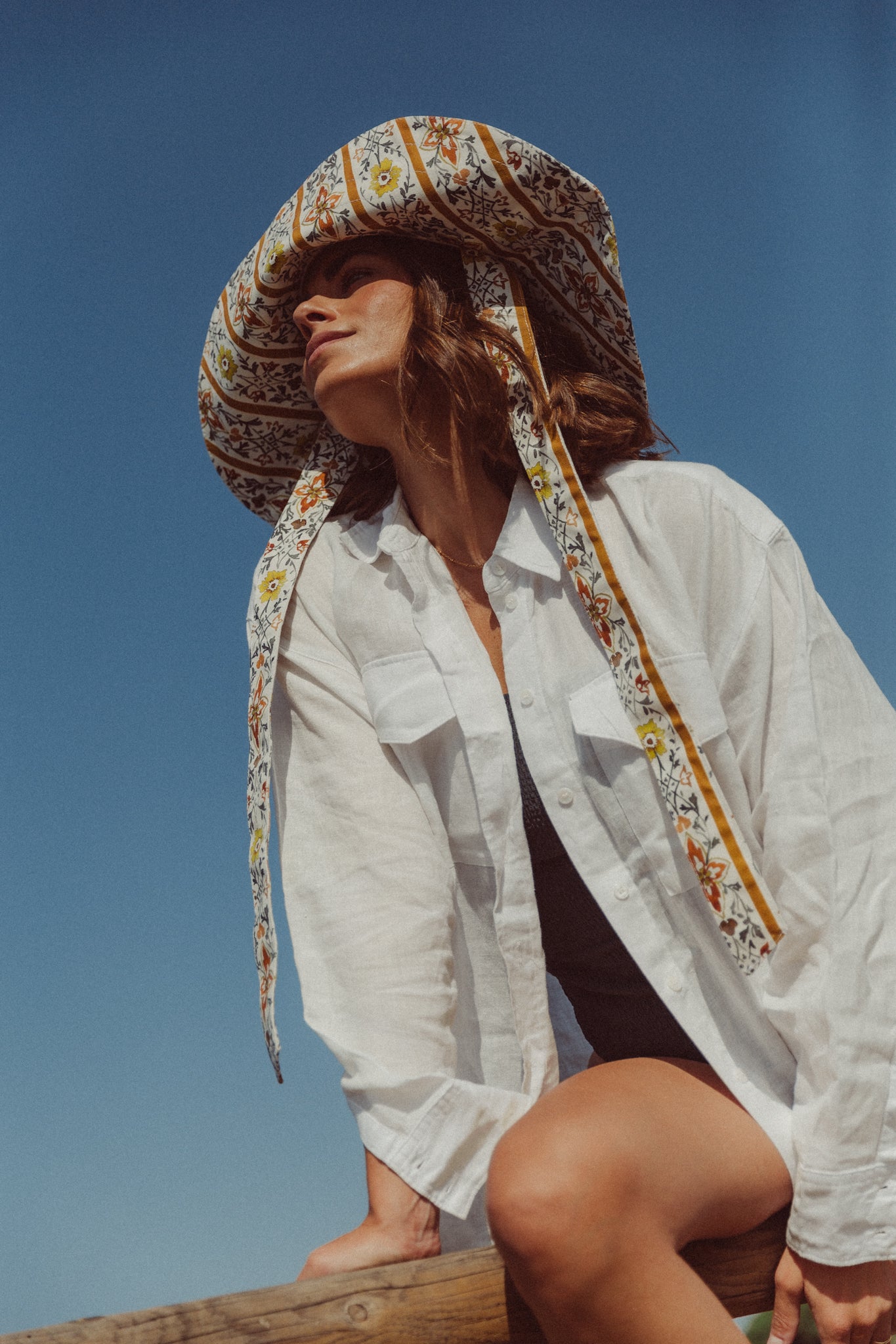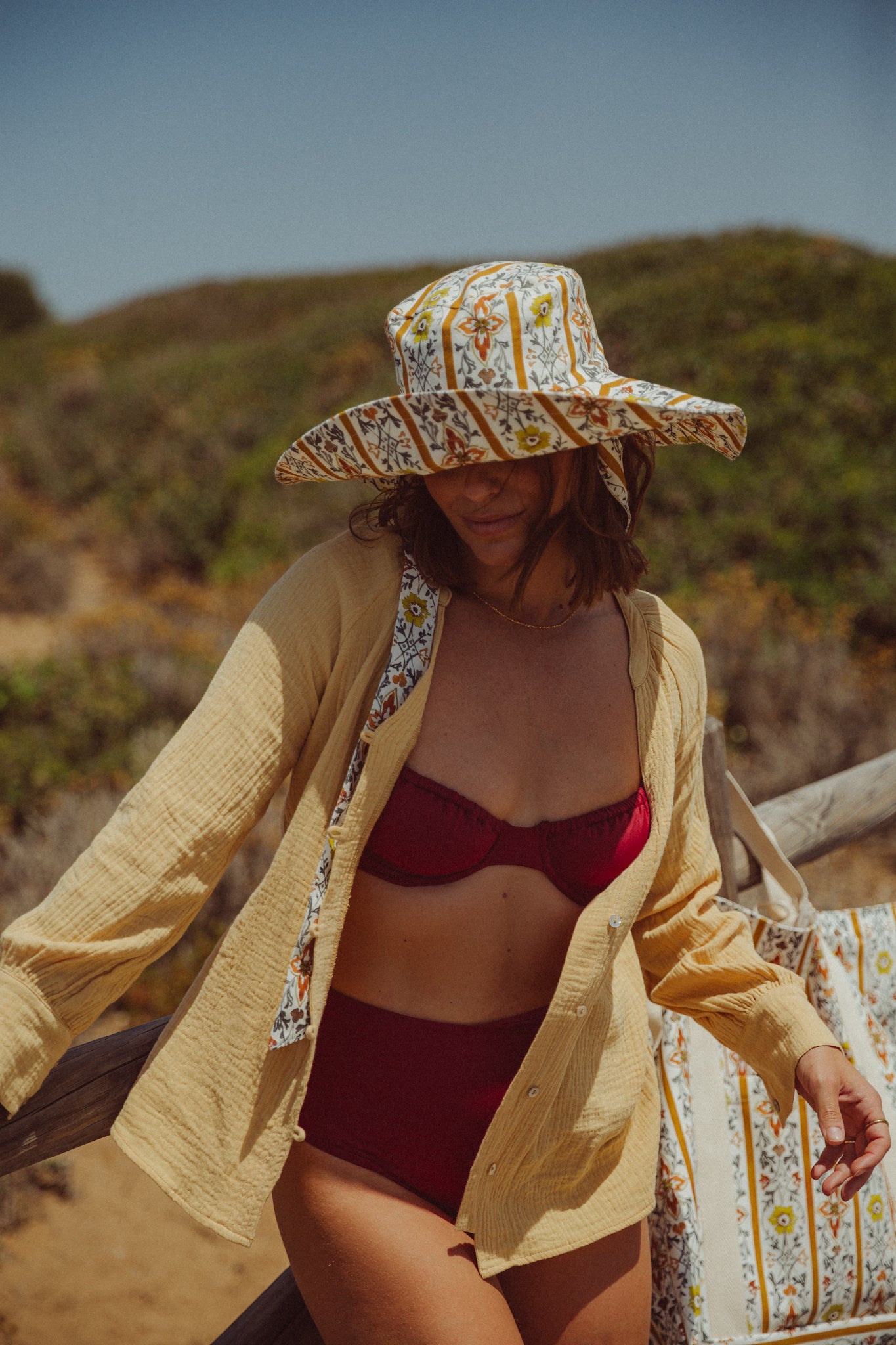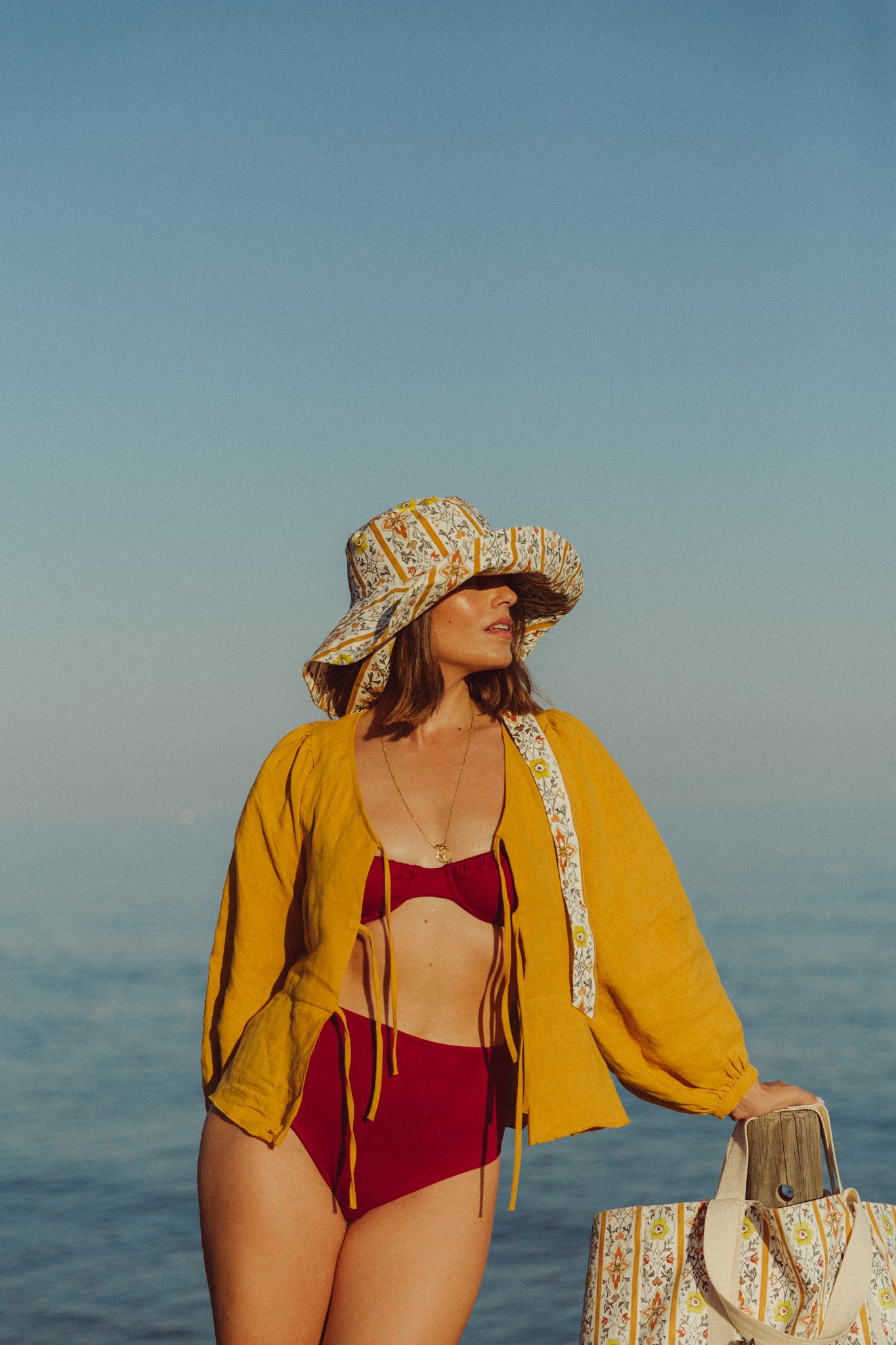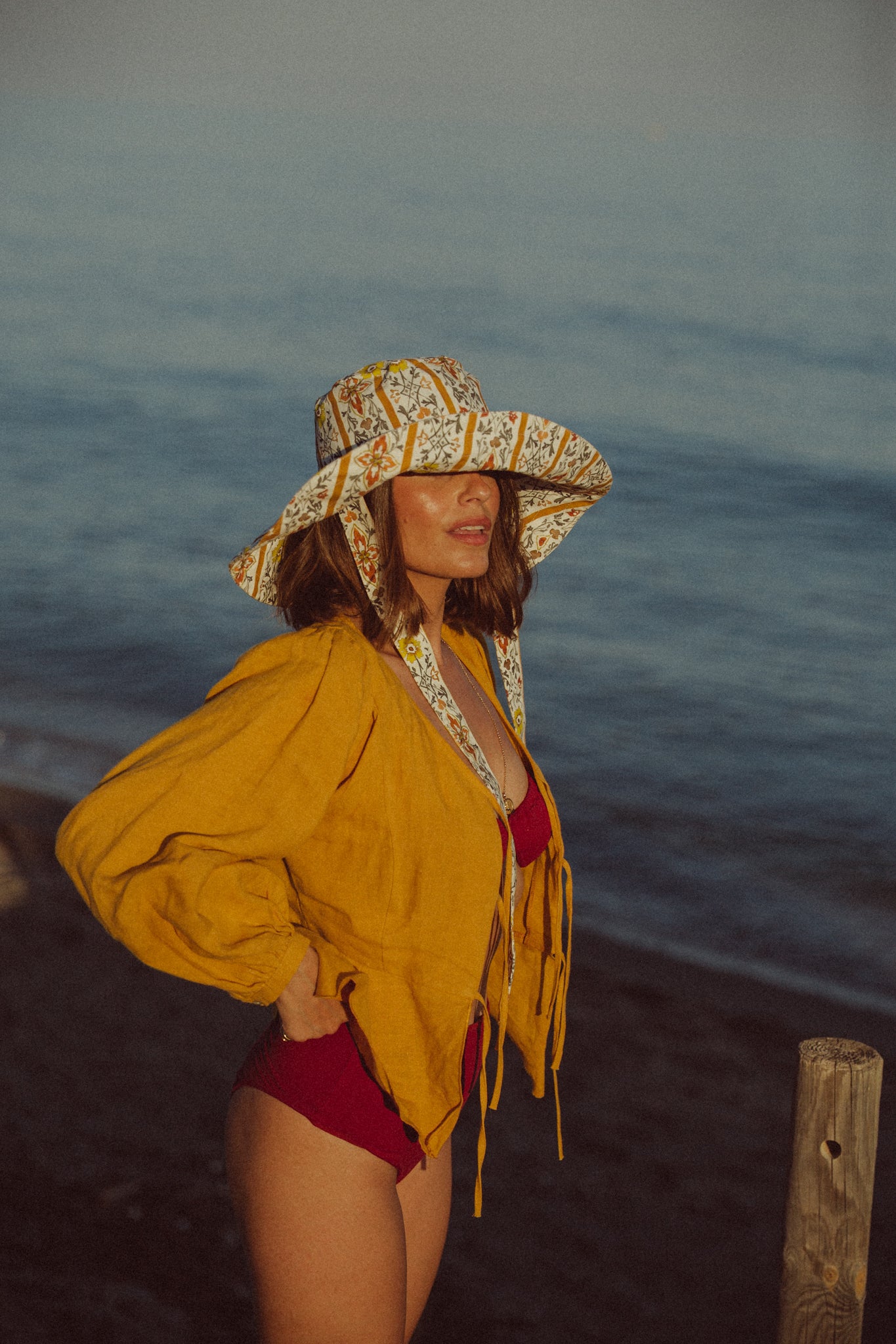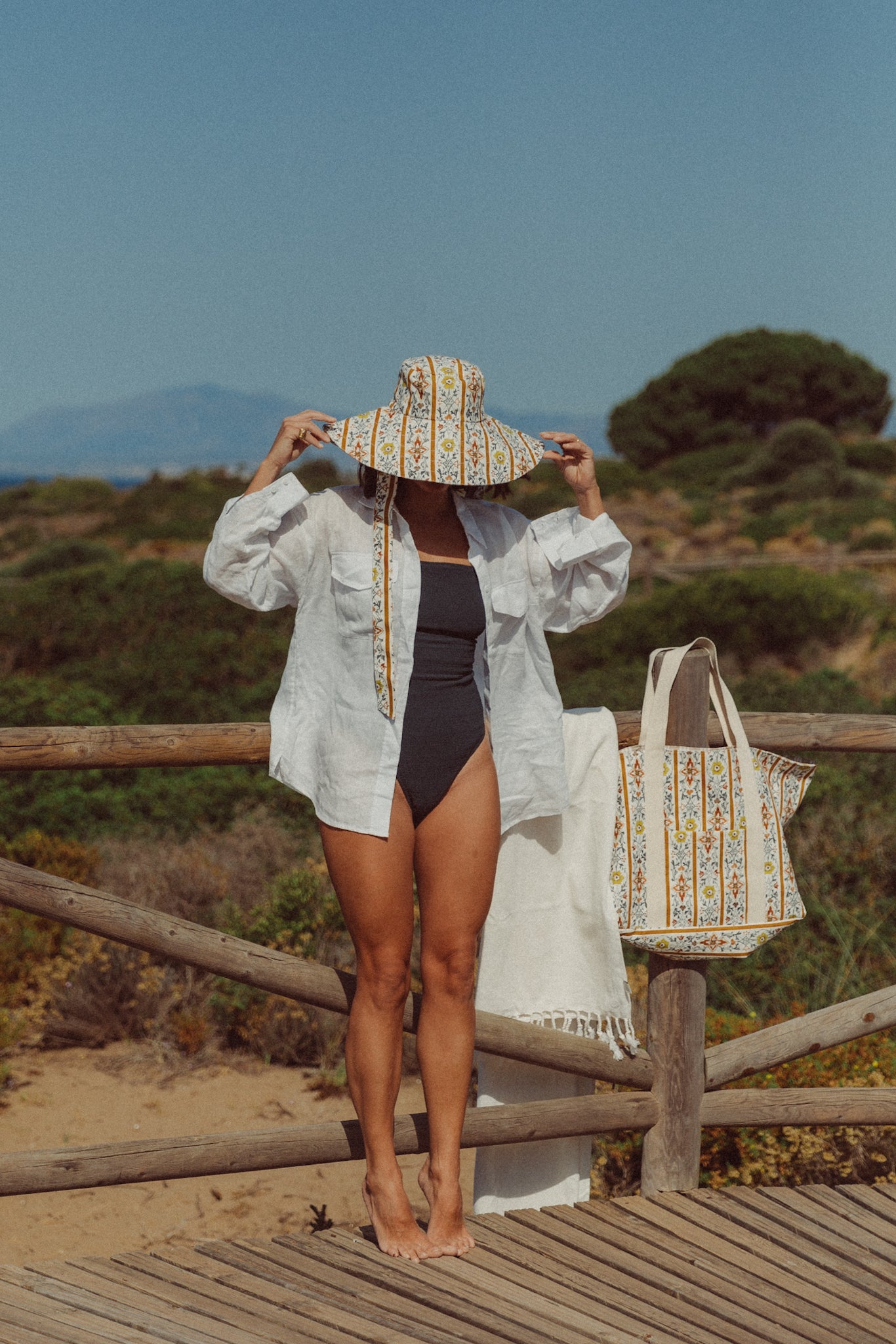 Protege tu piel del sol con estilo con el sombrero de ala ancha Tula Maison. Diseñado pensando en la funcionalidad y la elegancia, este sombrero es el accesorio ideal para tus días de verano. Un ala especialmente ancha para cubrirte y protegerte del sol, pero que puedes doblar a tu gusto para que te resulte cómodo, ya sea en la playa, en el jardín o en un paseo!